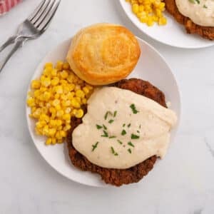 Make the gravy in the same pot, and cook until thickened. Adjust the salt and pepper to taste before serving. Is the Gravy too thick? Splash in more milk.