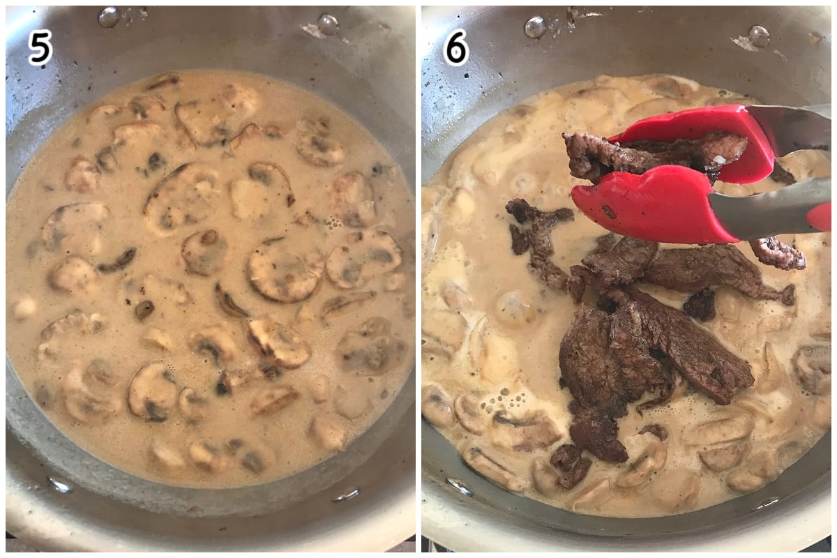 To build flavor for this classic dish, beef strips are browned in the pan first, then mushrooms, and the pan is deglazed with beef broth for a robust sauce. The sauce is made without sour cream as my family do not like it here, but I don’t feel like we are missing anything flavor-wise.